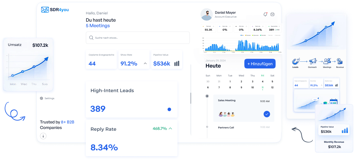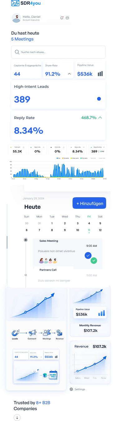 Unsere erfahrenen SDRs vereinbaren eure Termine professionell und authentisch. Unser Ziel ist es, stets den Weg für eine langfristige Partnerschaft zu ebnen.
